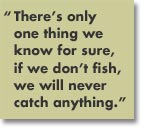 I'm not much of a fisherman but sometimes fisherman say profound things: A fisherman and his son were preparing for a trip to their favorite lake. It was late in the season and the lake was pretty much fished out. The son asked his father, "Why are we going? We will never catch anything." The father replied, "Son, there's only one thing we know for sure, if we don't fish, we will never catch anything. But there are three things we can do to improve our chances: we can fish longer, we can fish smarter and we can use more poles then the other guys."