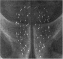 This X-ray shows the radioactive "seeds" throughout the prostate.